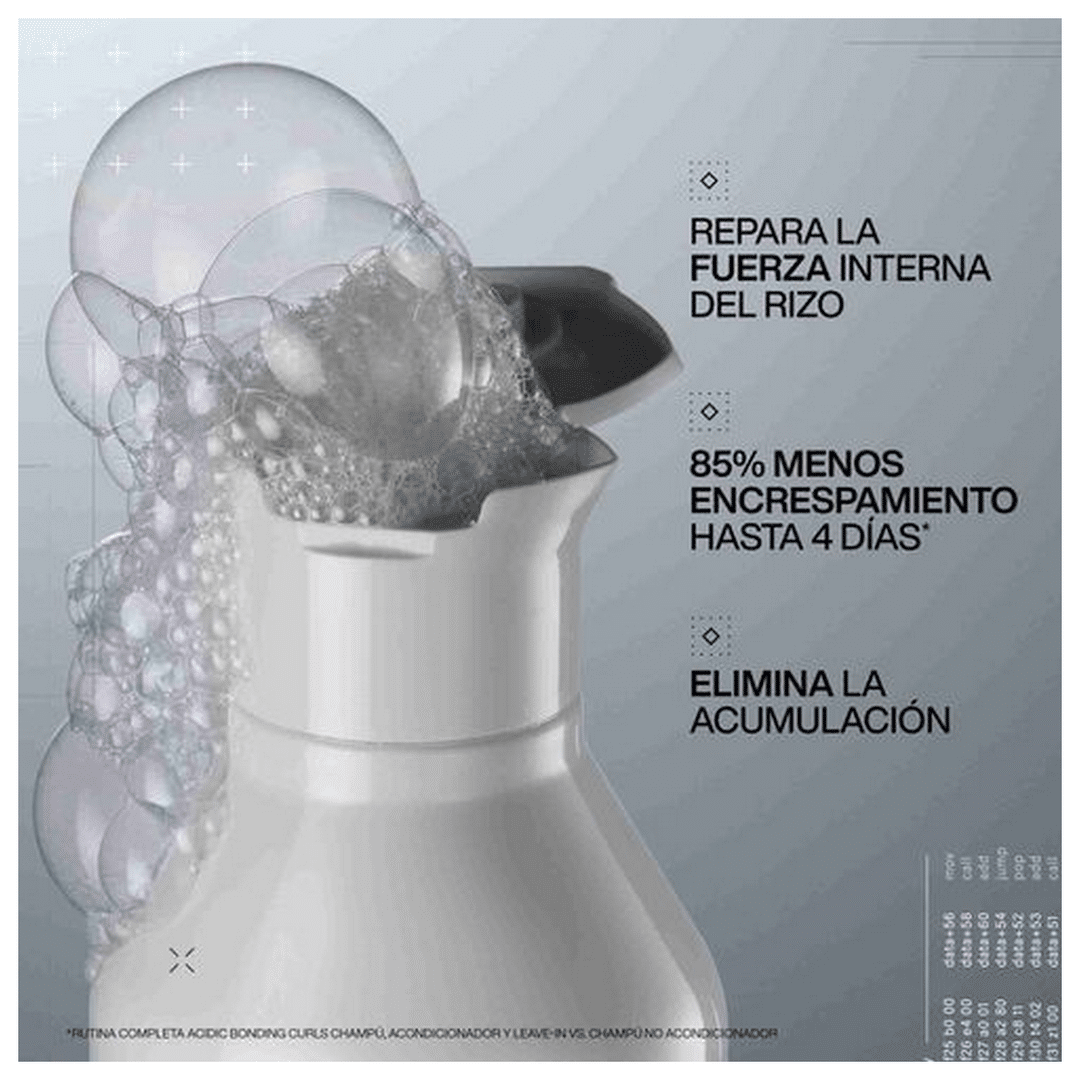 Champú Acidic Bonding Curls, el cuidado definitivo sin silicona que fija, restaura y fortalece tus rizos desde su interior. Formulado con una tecnología Curl-Bond, una potente combinación de ácido cítrico, urea y glicina, este champú reactiva la fibra del rizo, proporcionando más fuerza, brillo y volumen. Elimina la acumulación de resíduos en el cabello y en el cuero cabelludo, recupera enlaces y repara la fuerza interior de los rizos. Además, al tener aceites naturales como el de aguacate, coco y manteca de karité, garantiza una hidratación profunda y una reparación duradera. Libre de siliconas, asegura unos rizos limpios, ultra hidratados y definidos, sin aportar peso. Confía en Acidic Bonding Curls para un cuidado experto y transformador de tus rizos más exigentes.