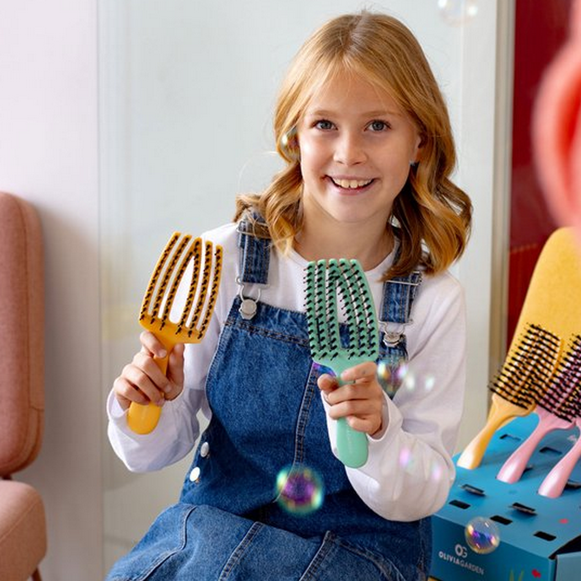 Sumérgete en una aventura submarina con esta versión mini del cepillo más vendido, ¡especialmente diseñado para niños! Cada color de cepillo representa un animal marino diferente: amarillo para el caballito de mar, rosa para la estrella de mar y verde para el pulpo. No solo a los niños les encantarán los diseños divertidos y creativos, sino que los padres también se beneficiarán de una solución desenredante eficaz para el cabello fino y enredado de sus pequeños   5666 OLIVIA GARDEN FINGER BRUSH COMBO MINI KIDS MINT