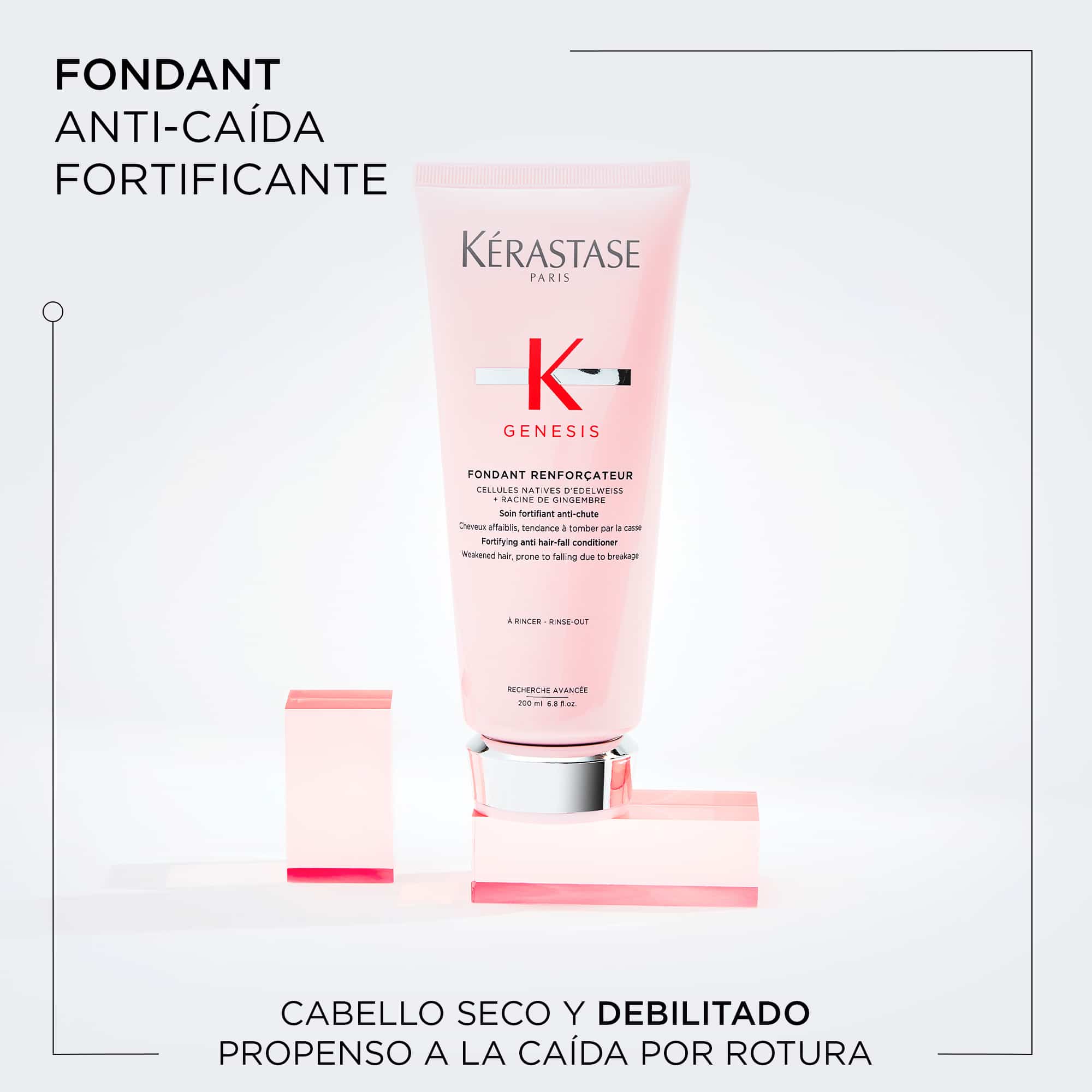 Contiene células nativas de Edelweiss y raíz de Gengibre que refuerzan la fibra para evitar su rotura y alisan la cutícula para un tacto suave.