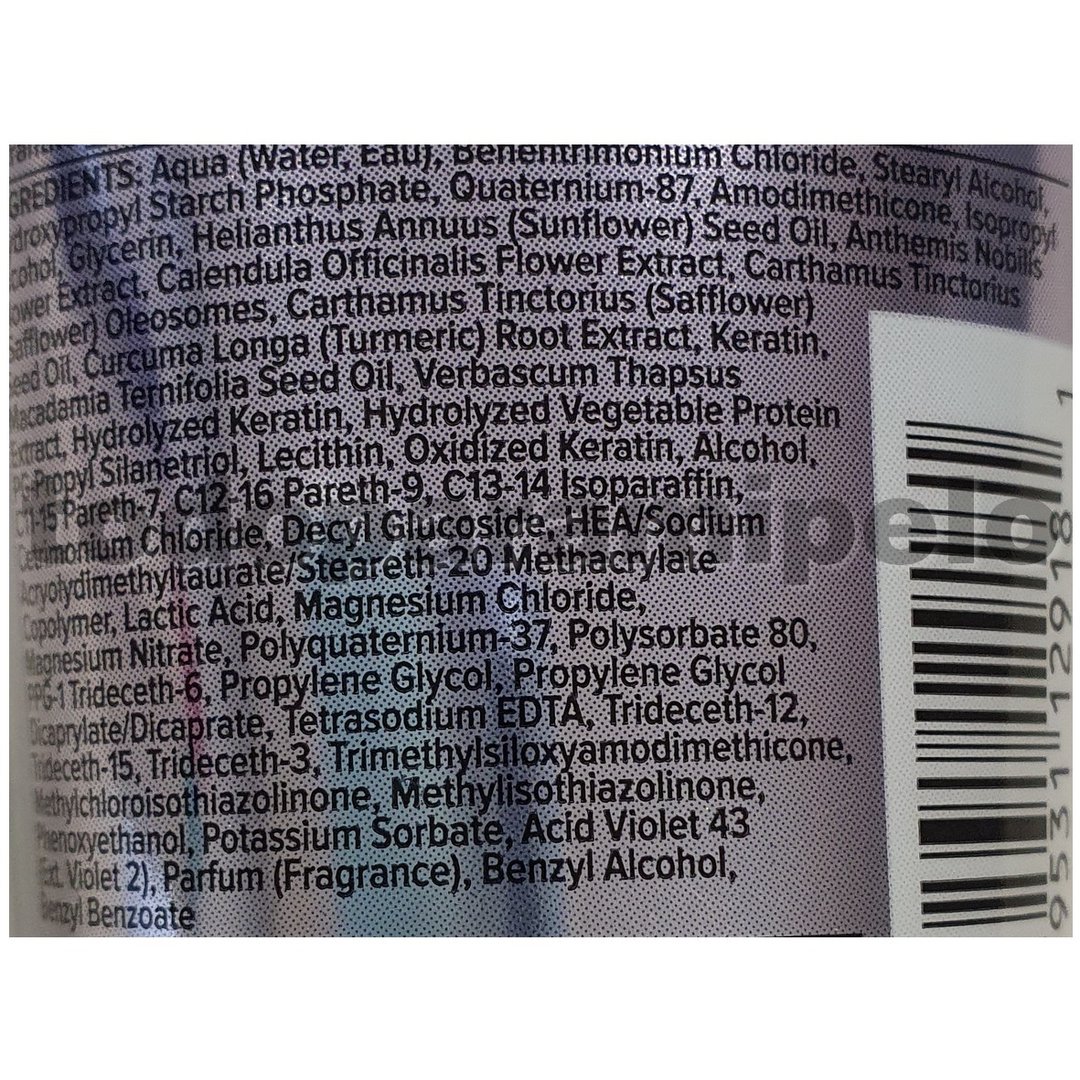 Acondicionador ideal para cabello rubio, tanto si es natural como si es teñido o con mechas. Su fórmula mantiene el color vivo y brillante, evitando los tonos amarillentos. En el cabello blanco y gris ocurre lo mismo, realza el blanco o el gris natural quitando la opacidad, volviendo el cabello más bonito y sin tonos amarillentos.