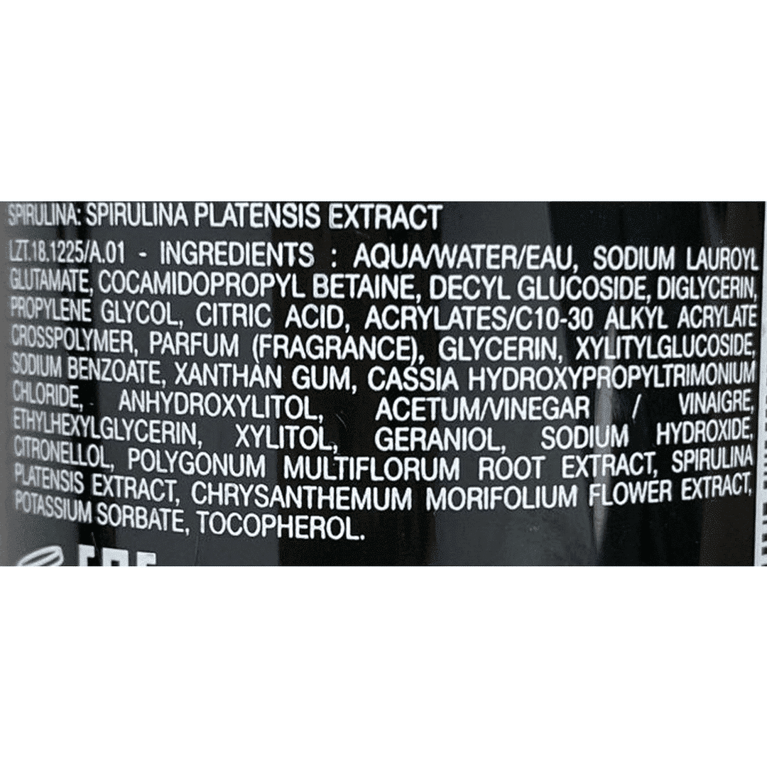 Con extractos botánicos de vinagre de arroz y espirulina, purifica el cuero cabelludo mientras aporta hidratación a los largos y puntas. Compuesto por 93% de ingredientes naturales, su fórmula vegana reequilibra la fibra, el cabello recupera la suavidad y el brillo.