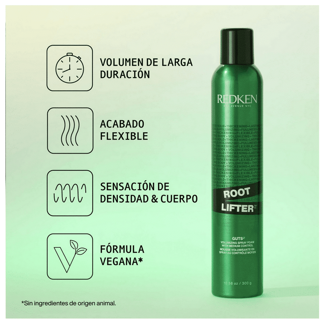Innovadora espuma en spray que da volumen instantáneo en las raíces del cabello, dejándolo más grueso. Fijación media para una duración del volumen más prolongada.