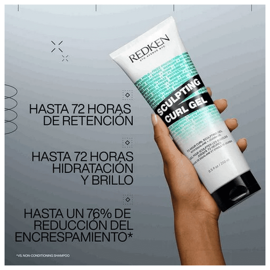 Redken Sculpting Curl Gel, una solución eficaz para proteger tus rizos del encrespamiento hasta 72 horas. Su fórmula avanzada, con complejo de aceite de escualano, no solo fija el peinado, sino esculpe y sella los rizos para previener el encrespamiento manteniendo el cabello suave y manejable. Con una alta fijación sin encrespamiento, tus rizos se mantienen definidos sin perder la estructura y sin dejar resíduos en el cabello. Sculpting Curl Gel garantiza un aspecto ligero y natural para que puedas lucir unos rizos definidos.