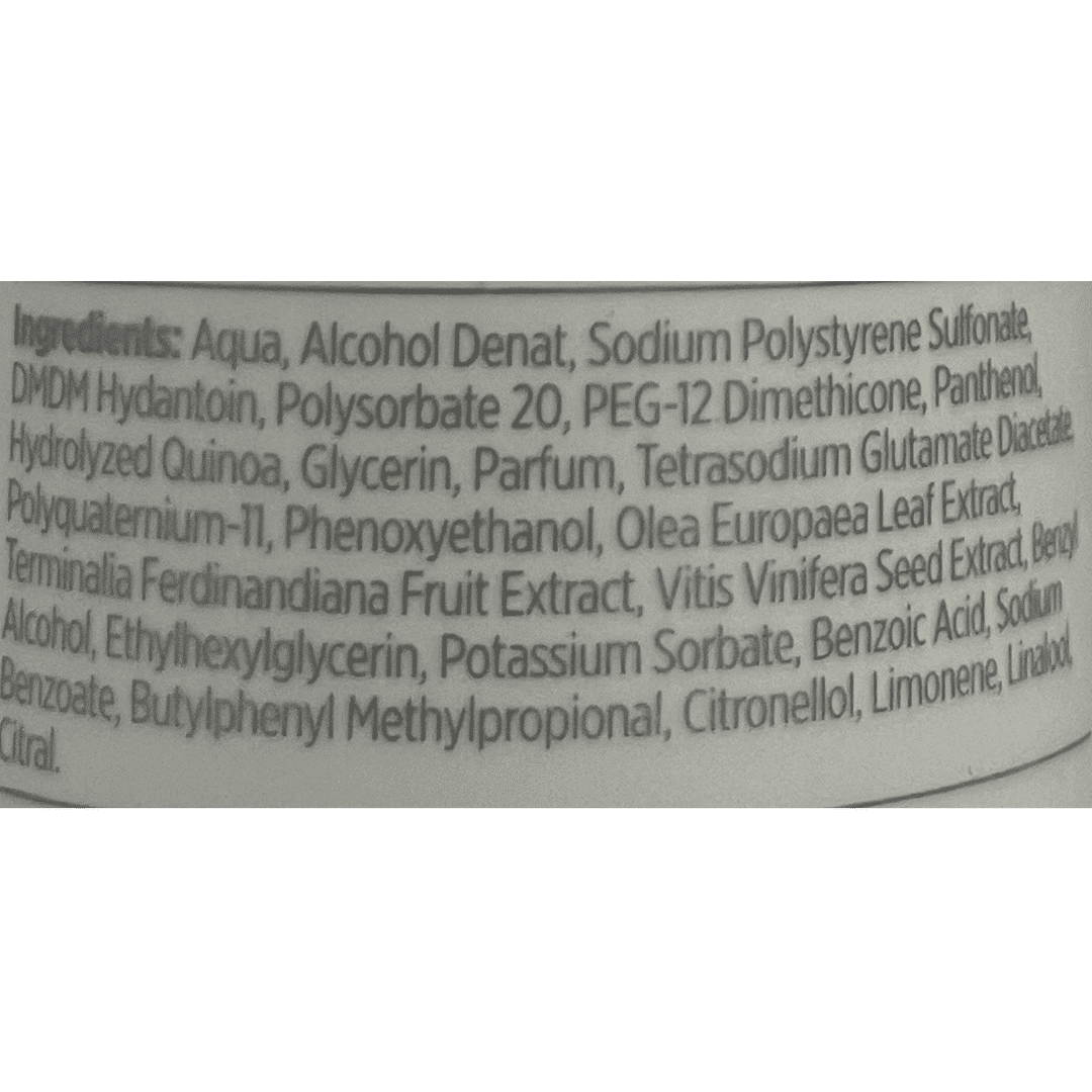 Formulado para proteger el cabello de los efectos dañinos de las herramientas de peinado con calor. Este spray ligero proporciona una fijación natural duradera y deja el cabello suave y brillante. Ayuda a reducir la estática suelta sin grasa ni acumulación. Contiene proteínas de quinoa, ginko biloba y extractos de manzanilla.